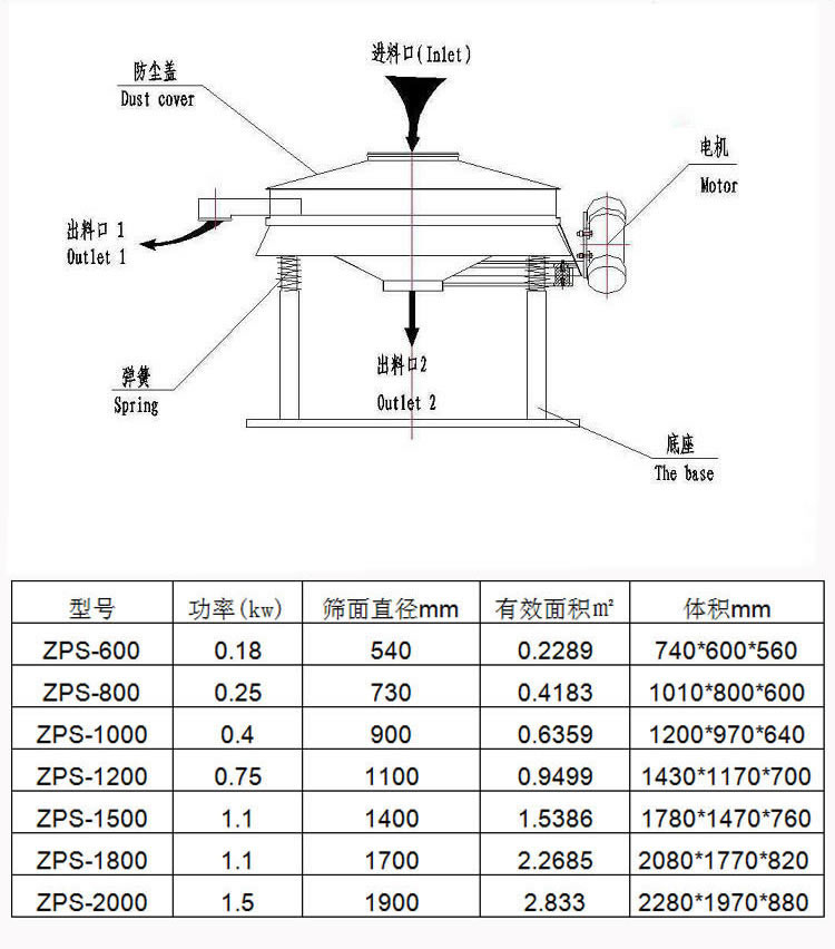 多用于面粉、淀粉、洗衣粉、金屬粉、添加劑、化工、非礦等行業的顆粒粉末的粗略篩分、精密篩分,處理量大、易與生產線結合。可在600MM至1800MM之間選擇。